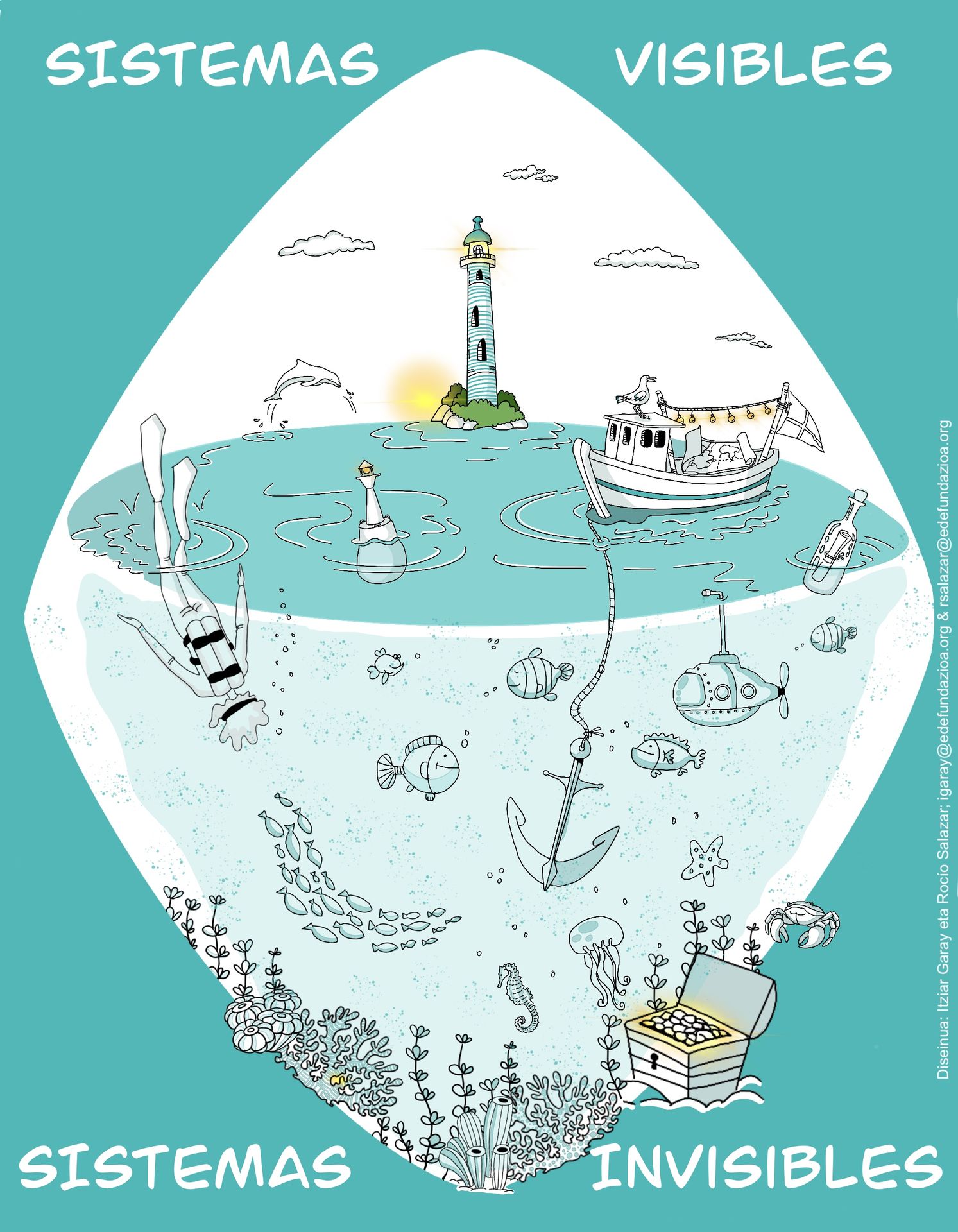Entre estos dos mundos, visible e invisible, existen puentes y conexiones: una botella con mensaje que viaja de la superficie al fondo, un submarino que permite transitar entre lo formal y lo emocional. Son esos espacios de comunicación y confianza donde lo estructurado se encuentra con lo humano, recordándonos que ninguna organización se entiende solo desde sus reglas, ni únicamente desde sus vínculos informales.